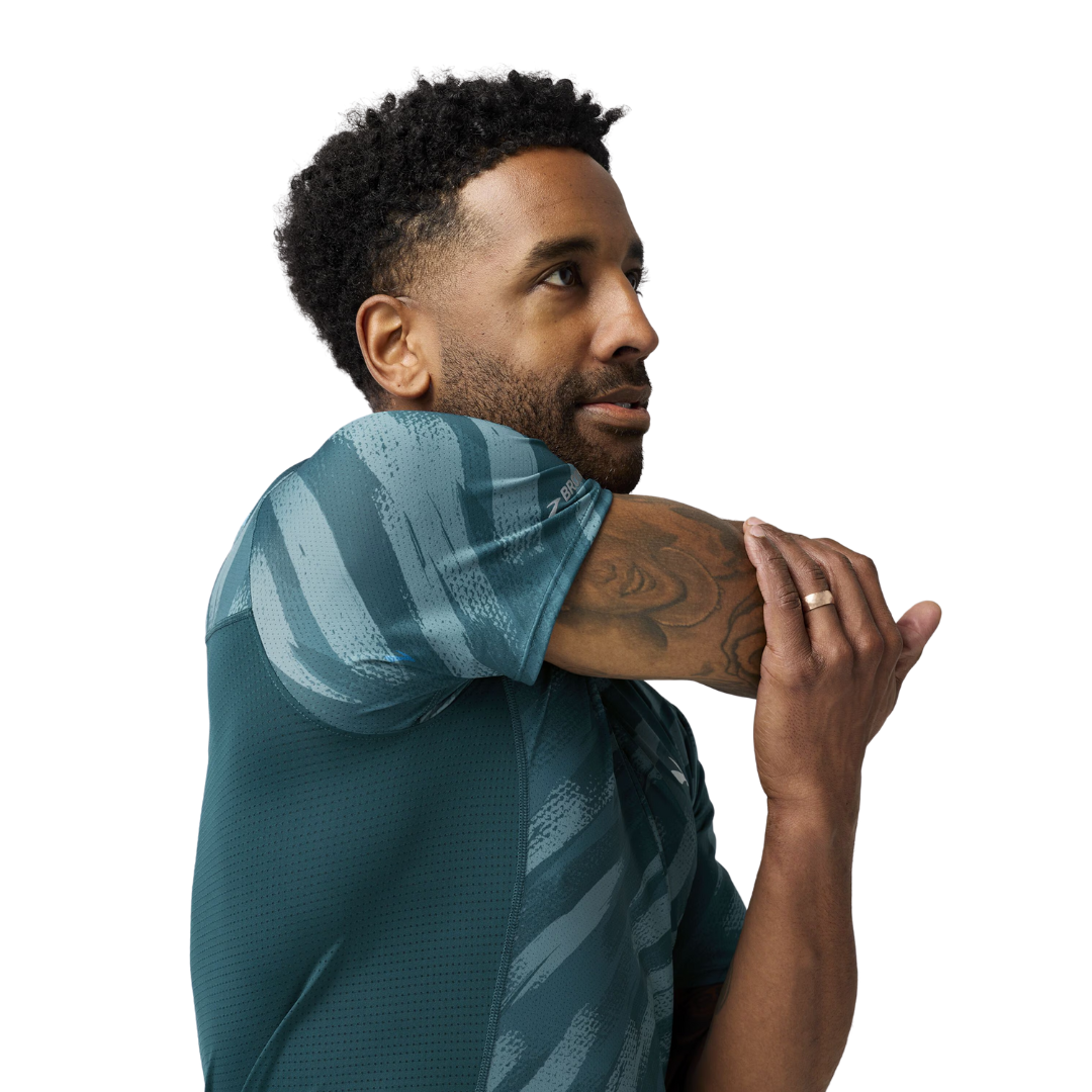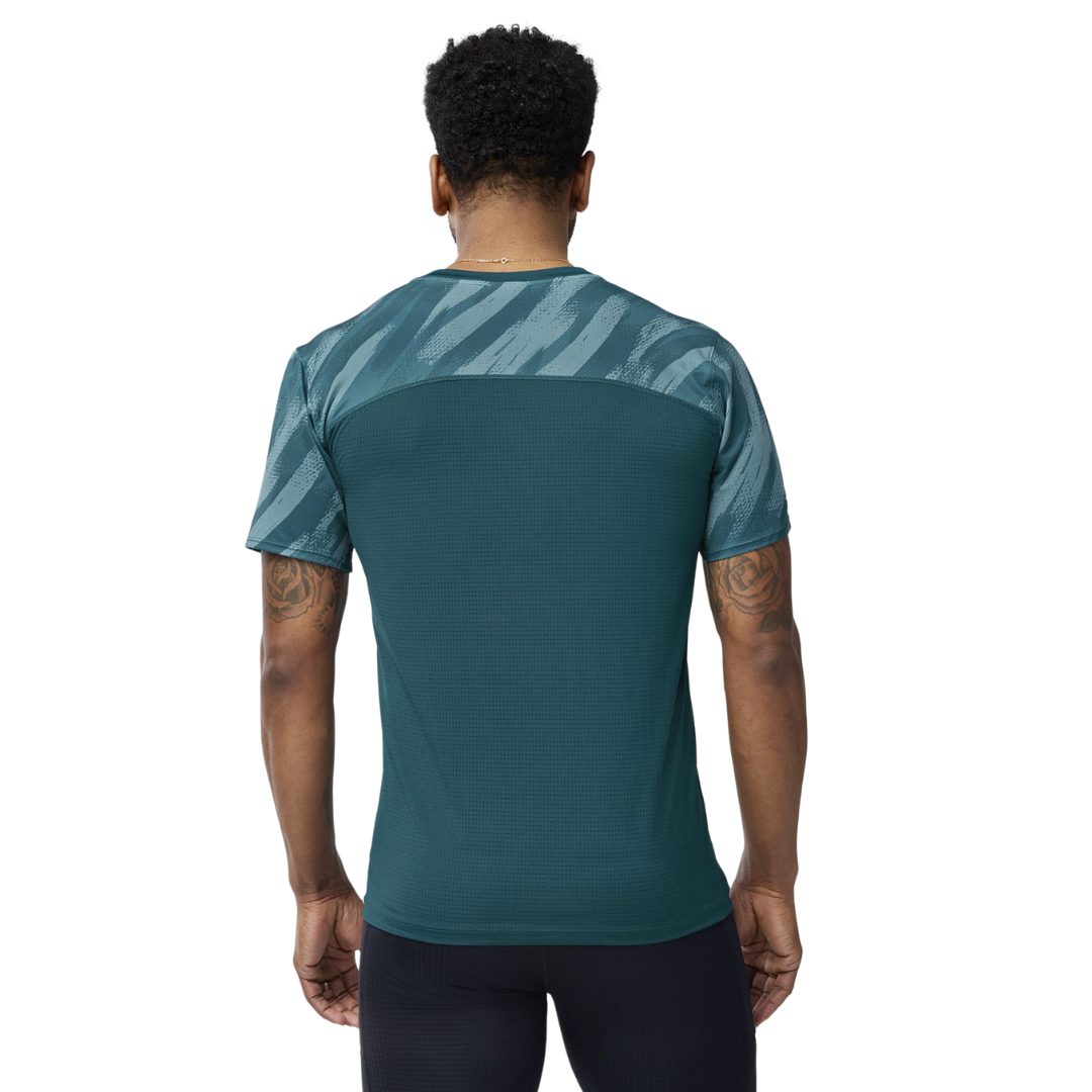 You can outrun the heat in this short sleeve running top. It has sun protection, stretch fabric designed to dry fast, and it's stink-proof (really!).