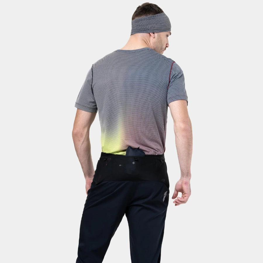 Built for the trails and beyond, the All Terrain Trackster is designed to move with you. Lightweight, breathable, and made from recycled yarns, these slim-fit tracksters balance comfort with performance. Added stretch and articulated knees give freedom of movement, while ankle zips make them easy to pull on and off. With four handy pockets—three stash and one secure zip with a key loop - you’ve got space for gels, layers, and essentials. Reflective details and a drawcord waistband complete this versatile outdoor running essential.