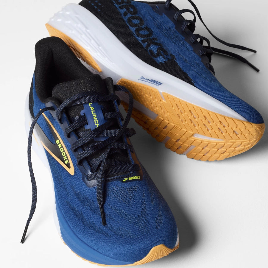 Push your pace in these lightweight men's running shoes. The Launch 11 delivers a fast and versatile ride thanks to light, responsive cushioning and a streamlined, breathable upper to help eliminate distractions while you're on the move.