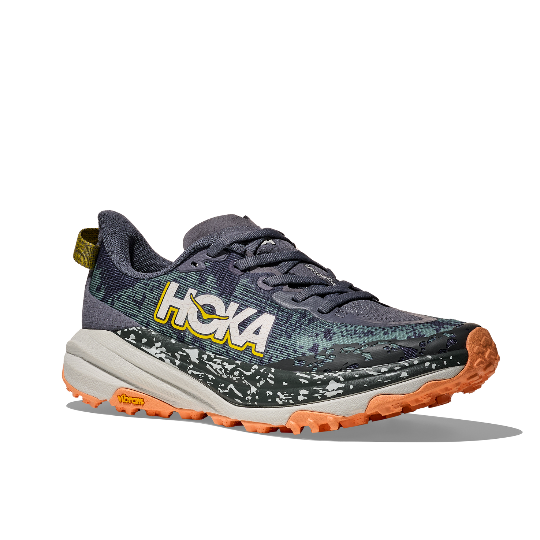 A grippy, responsive ride for technical terrain. There’s only one GOAT on the trail. And this is it. Combining HOKA’s tried and true cushioning with aggressive traction and ultralight materials, the Speedgoat 6 was born to tame the trail. A workhorse for technical terrain, this recent reissue was refined with a breathable woven textile upper, foot-hugging internal chassis, plusher dual gusset tongue, and revised lug orientation inspired by the hoof of a goat (what else?)