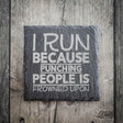 Bring a smile to your space with this laser-engraved slate coaster - perfect for runners with a sense of humour. Featuring the witty line “I Run Because Punching People in the Face Is Frowned Upon,” it’s available in a matt or gloss finish. Crafted from premium, durable slate and engraved in our Yorkshire studio, it’s a fun, practical gift for runners or anyone who loves a good laugh.
