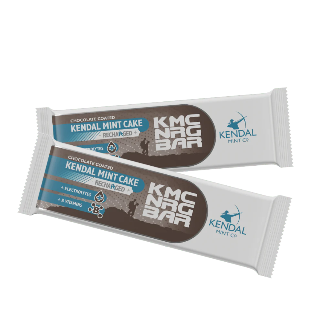 KMC NRG BAR Chocolate Coated Kendal Mint Cake Recharged is the perfect snack for all fitness levels. Enjoy delicious vegan and gluten-free chocolate-coated Kendal Mint Cake Recharged with an intelligent electrolyte and B vitamin formula for maximum energy on the go. Recharge your next adventure here.
