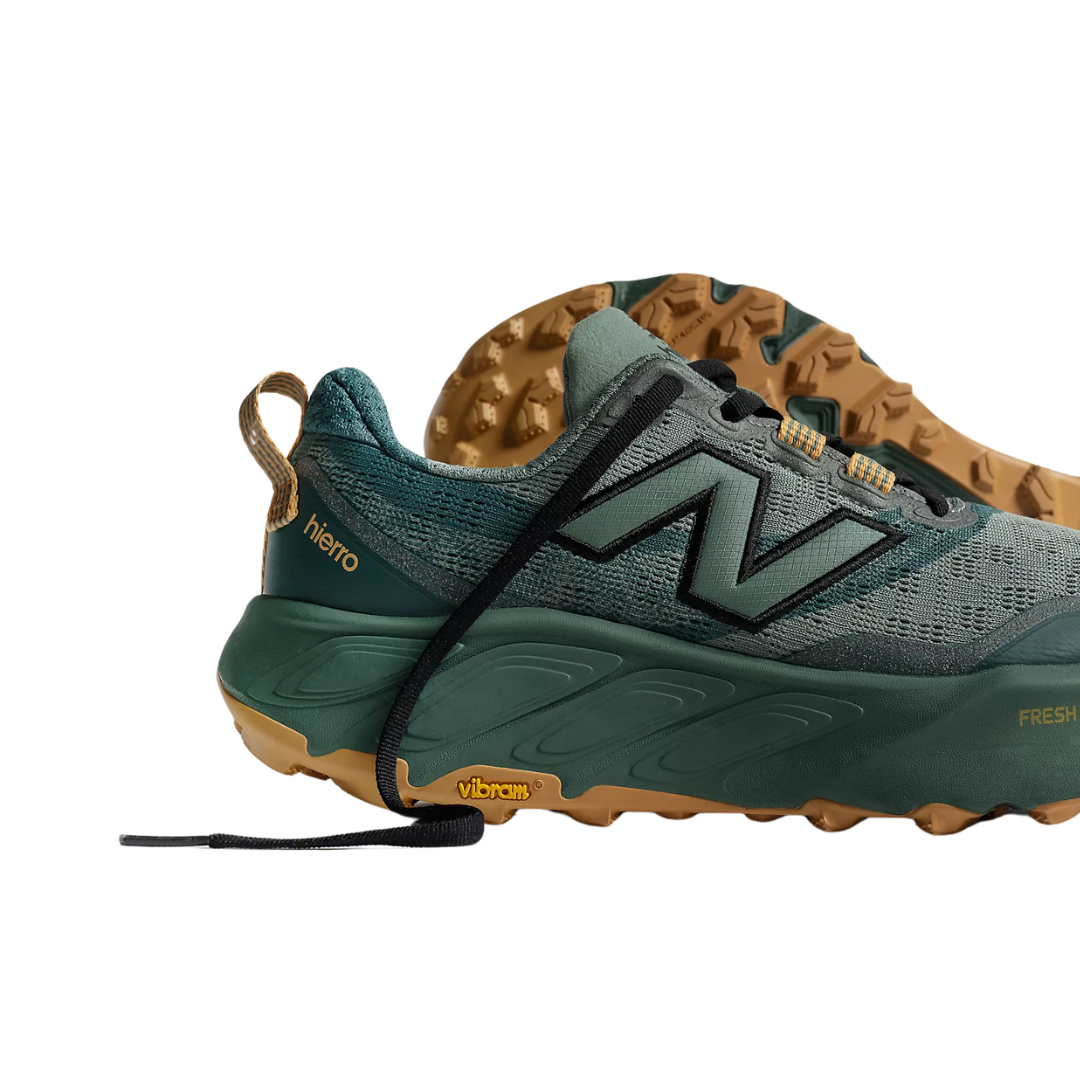 The Fresh Foam X Hierro v9 offers ultimate reliability for adventurous terrain, with technical features designed specifically for the trail runner. Dual-density cushioning combines plush comfort with a more stable underfoot feel. A Vibram® outsole features a revamped tread pattern and deeper, 6mm lugs, for superior traction, and a knit upper with a gusseted tongue is breathable, while helping to protect against loose debris.