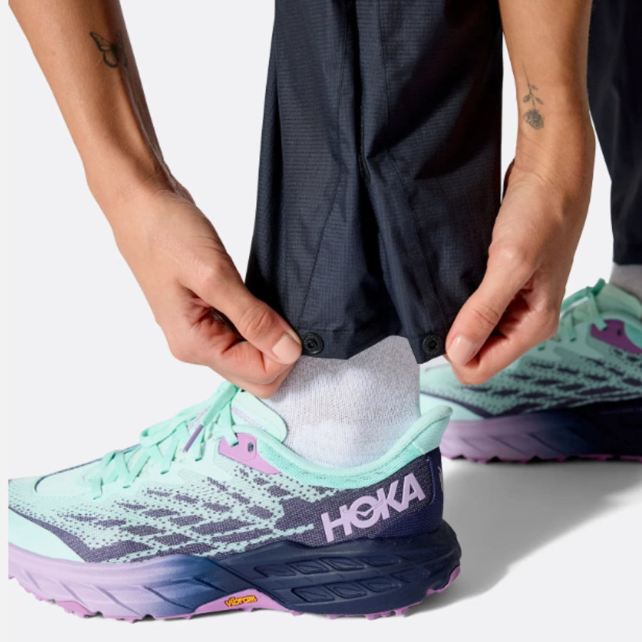 - The lower leg hem has a hook-and-loop and snap fastener, allowing you to minimise billowing and pull on/off with ease.